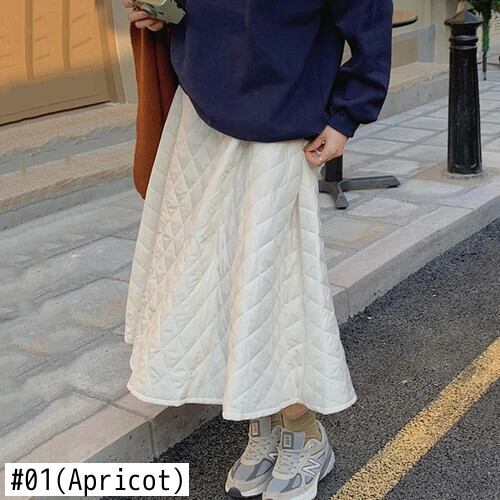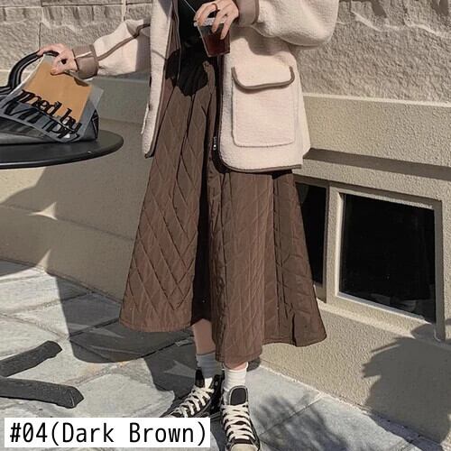 黒厚く暖かい綿パッド入りスカート 2024 秋冬チェック柄 A ラインウエストミディロング ブラック コットン オータム 秋物 ウィンター 冬物 Aライン