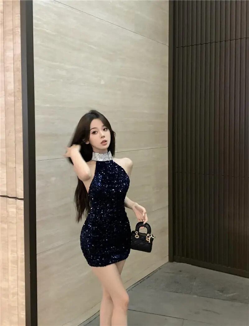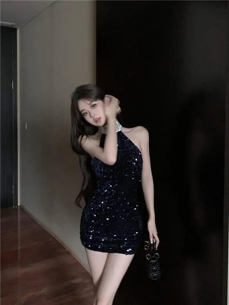 ドレスノースリーブホルターラインストーンセクシーパッチワークスリムパーティーミニスパンコール襟サンドレス
