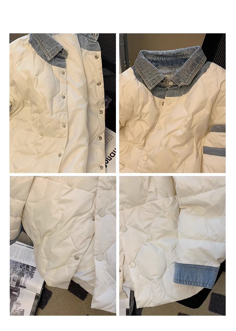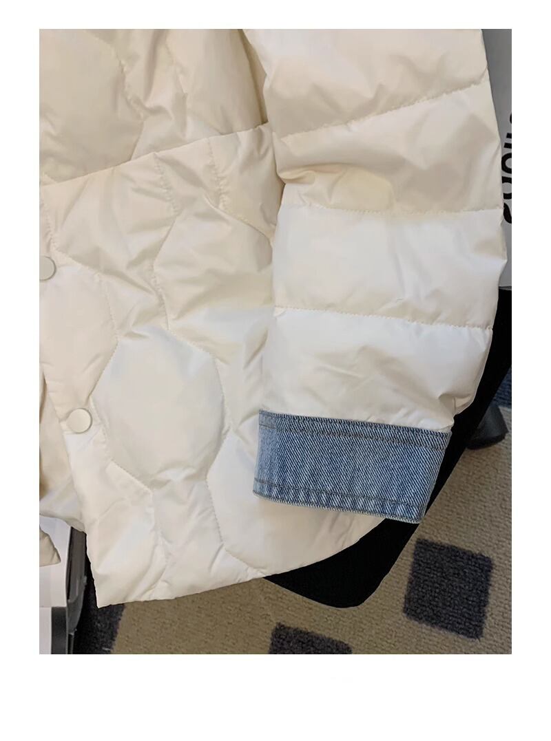 ダウンコットンデニムフェイクツーピースパーカールーズパファージャケットレディースメンズ軽量暖かいコートストライプトップ