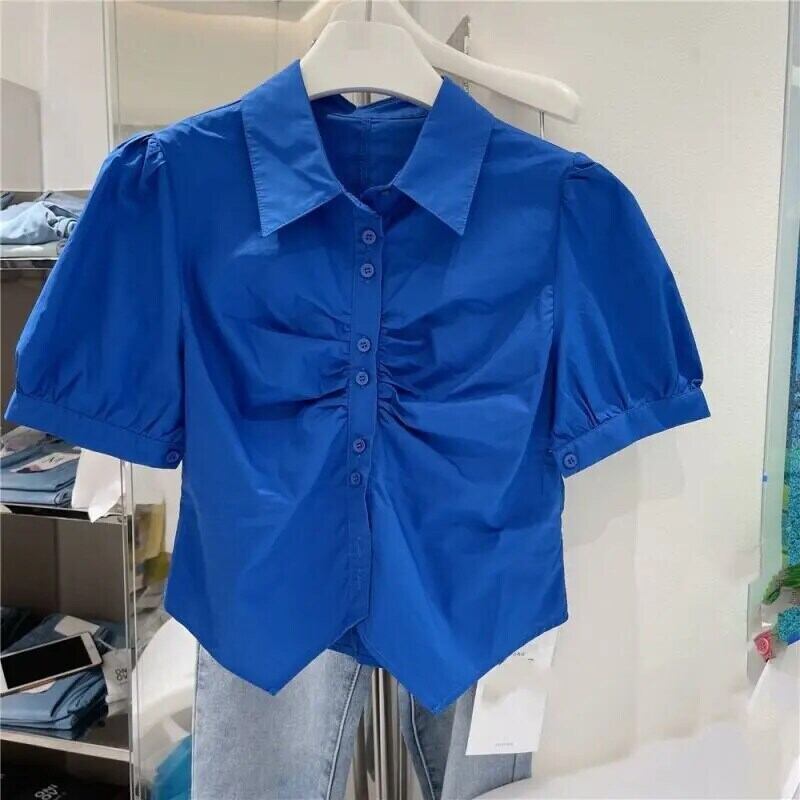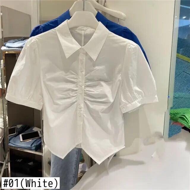 プリーツ不規則ブレストブラウスニッチ気質白シャツデクロップトップスシンプルホットスウィートシャツ ホワイト 大人ガーリー キュート カジュアル