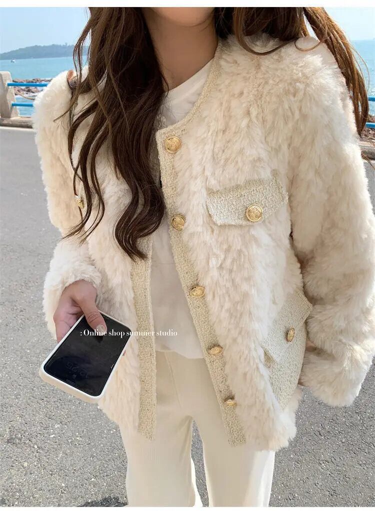 秋冬ラムウールジャケットスタイルストリート O ネックフェイクファーコート暖かい厚い毛皮ようふわふわ オータム 秋物 ウィンター 冬物 Oネック