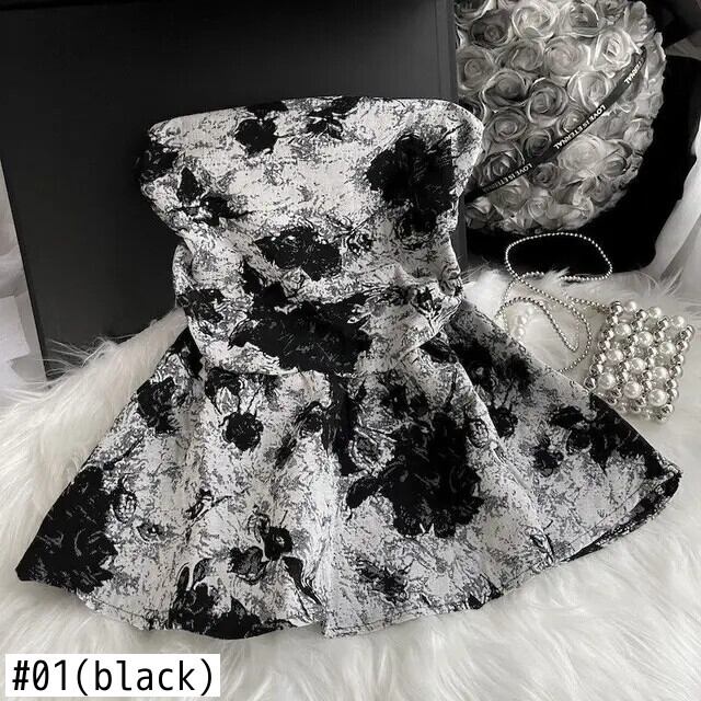 タンク & キャミソール セクシー クロップ トップス 水墨画 タイダイ ストラップレス フリル裾 スモール シャツ 2024 チュニック ブラウス