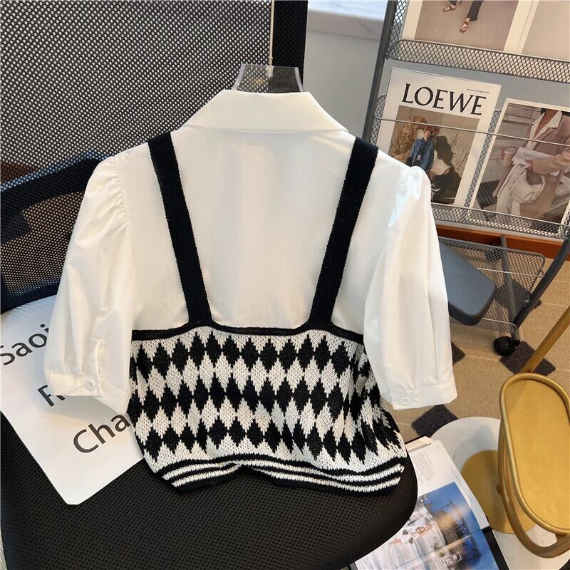 シャツ 2024 甘いグラフィック T クロップトップス春ピンク偽ツーピース半袖ニットセーター Ropa Y2k Tシャツ ショート ハーフスリーブ 大人ガーリー スウィート キュート カジュアル スプリング 春物