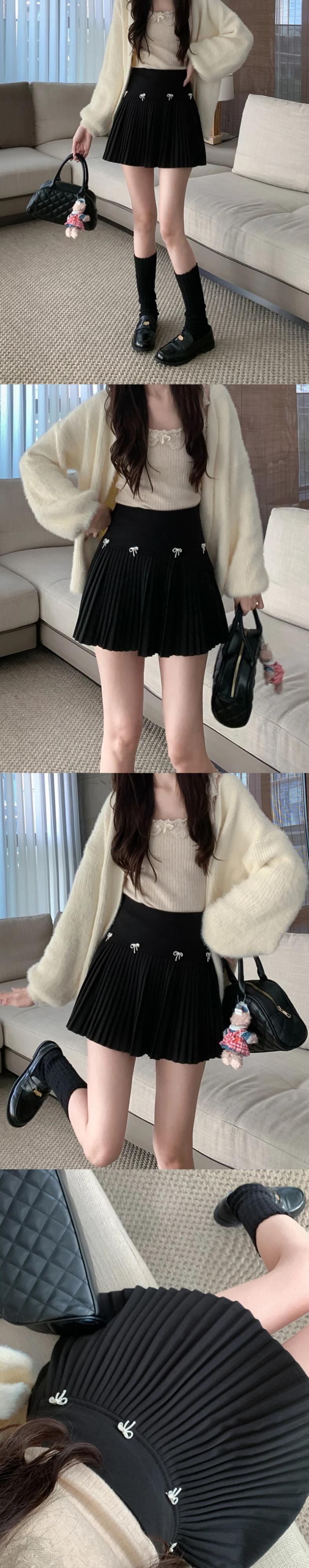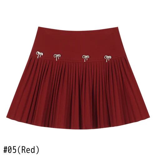 弓ウールスカートミニウエスト A ライン黒段 Faldas クリスマス赤プリーツスカート秋シック レッド ブラック リボン オータム 秋物 Aライン
