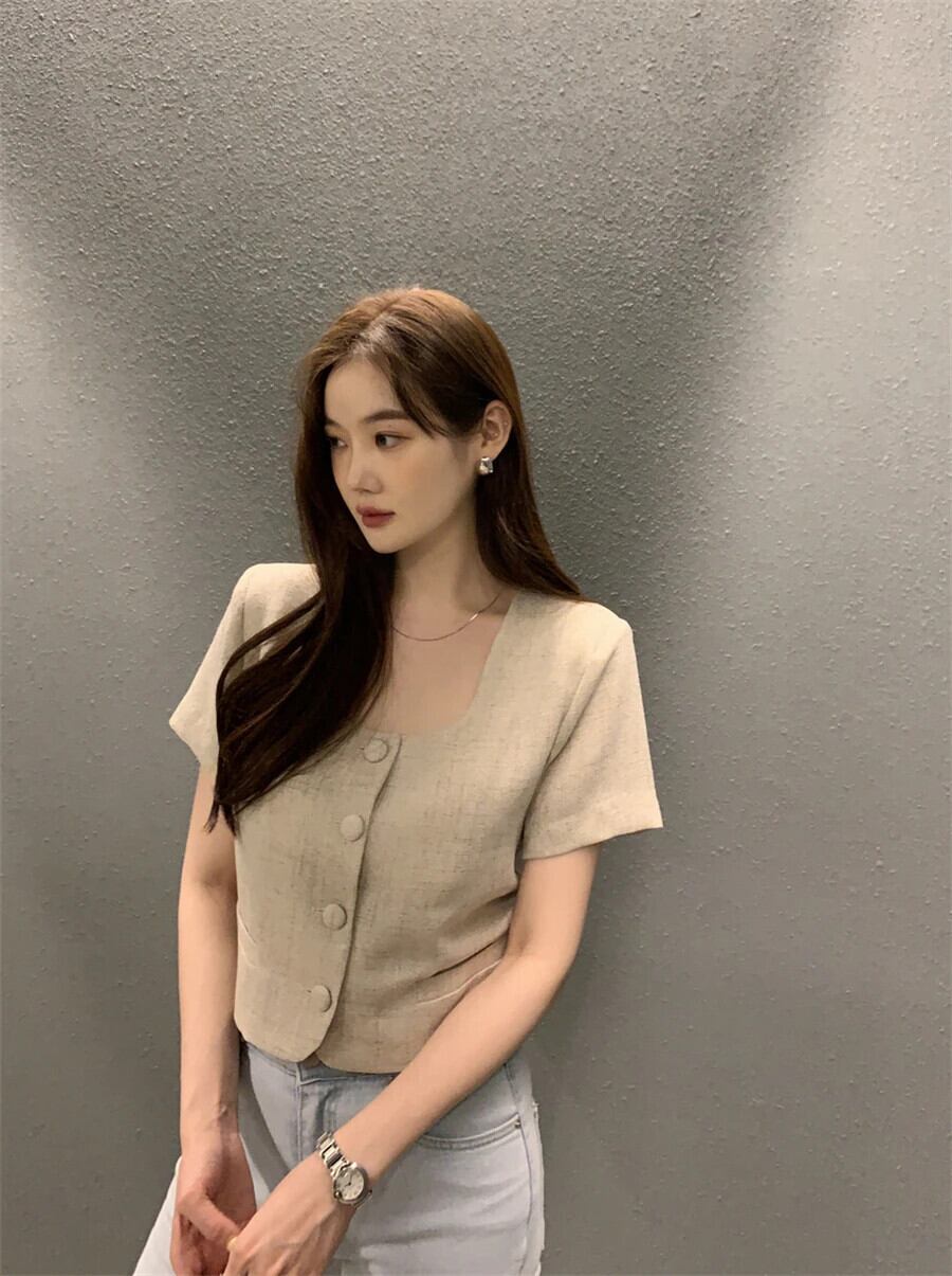 気質半袖ジャケット夏薄い小さスーツカーディガン 2024 クロップドコートピンクブレザートップス ショート ハーフスリーブ サマー 夏物