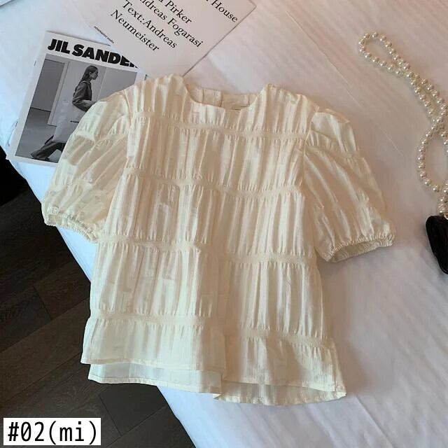 甘いパフ半袖クロップトップ De Moda 2024 プリーツ ブラウス ドール シャツ レディース Y2k 夏 ショート ハーフスリーブ 大人ガーリー スウィート キュート カジュアル サマー 夏物
