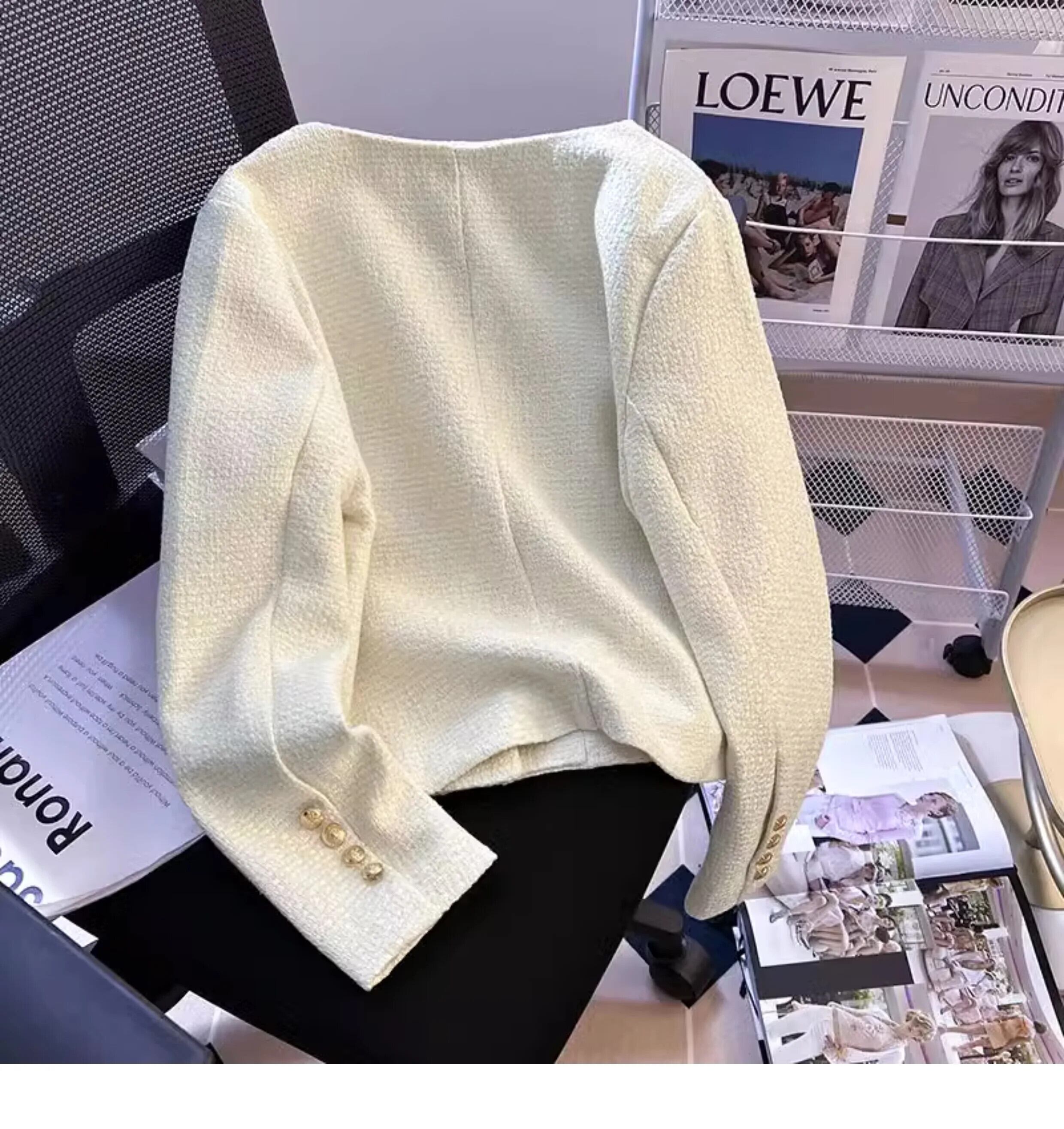 気質カーディガン Chaquetas パラクロップドブラックジャケット原宿スリムウール薄いツイードトップス かわいい