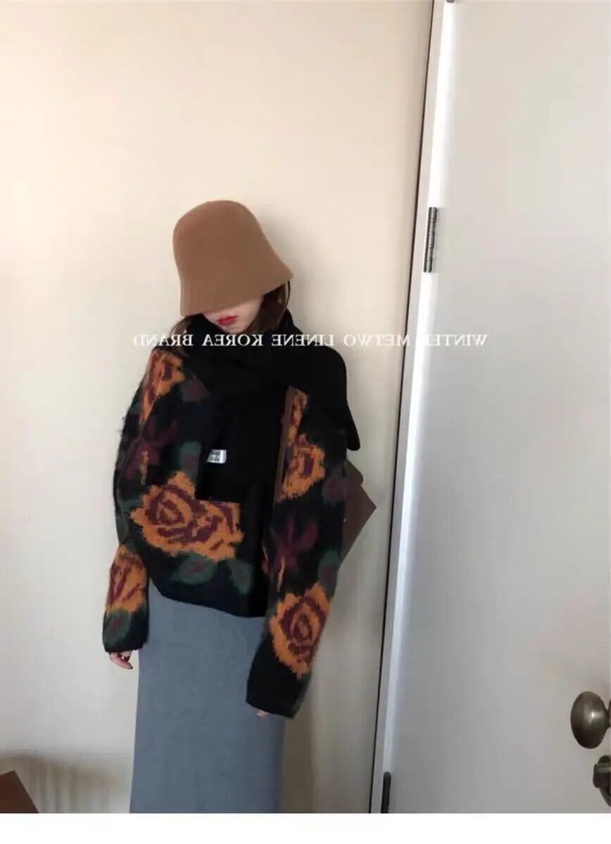 ジャンパー ブラック プリント プルオーバー ese セーター セーター Y2k トップ グランジ 特大セーター プル ローズ