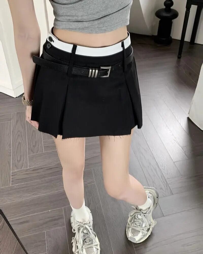 グレーシックスカートソリッドショートジッパーストレート 2024 秋ホリデーミニスカート段 Faldas オータム 秋物 ソリッドカラー