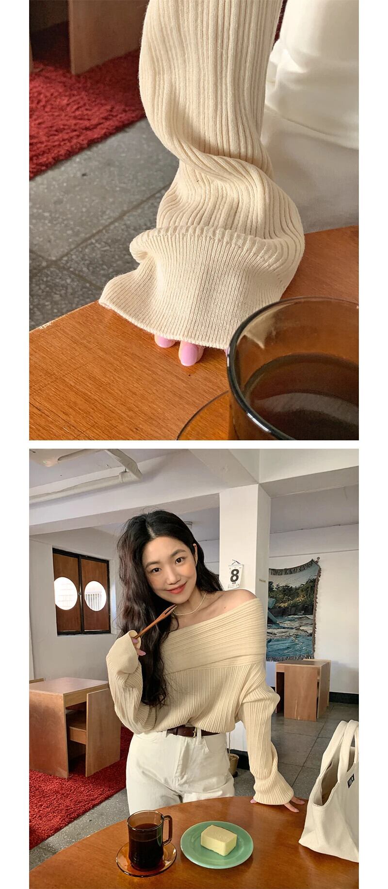 ジャンパー長袖トッププルオーバーオフショルダースリムフィットソリッドカラーセーターY2kセーターデニット ロング