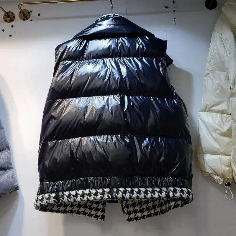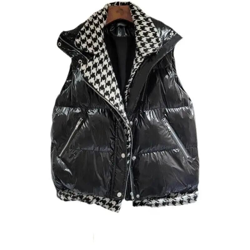 千鳥格子レディースダウンコットンベストコート 2024 ジャケットノースリーブチョッキ綿入りパーカーフグベスト