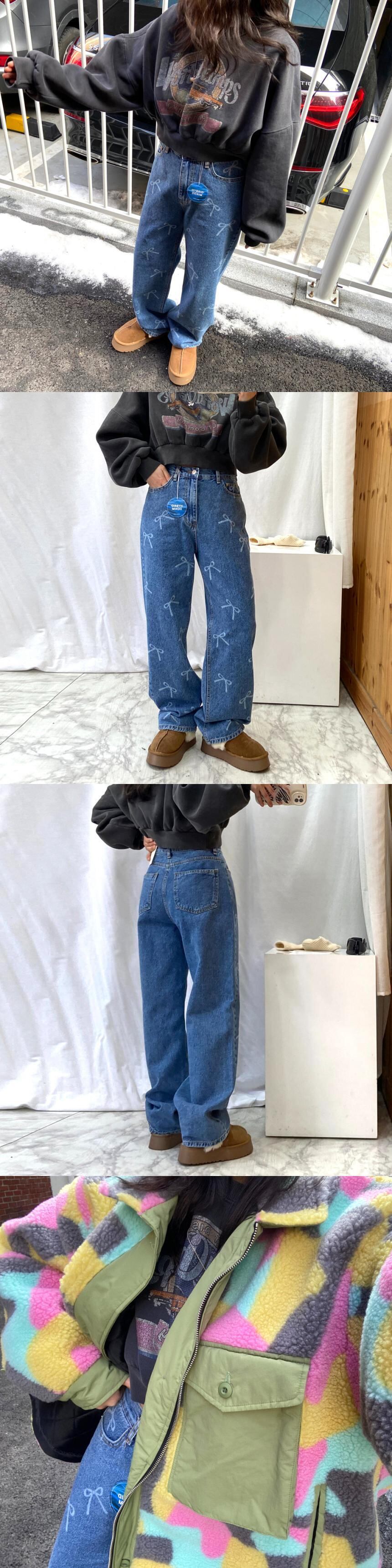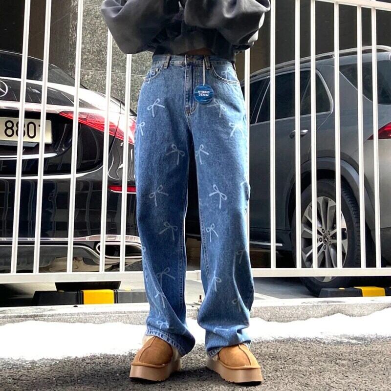 ストリートだぶだぶパンツウエストジーンズ Pantalones デボウプリントワイドレッグ秋 Y2k カーゴ リボン オータム 秋物 ワイドパンツ