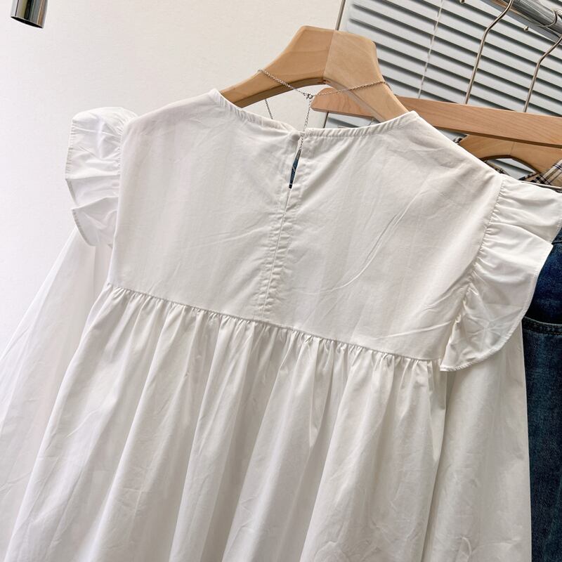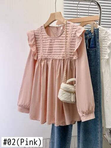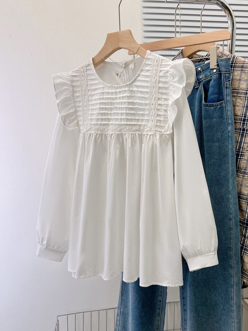 Chic Sweet Roupas ルーパス長袖ドールシャツトップ De Moda 2024 ホワイトプリーツブラウス ロング 大人ガーリー スウィート キュート カジュアル