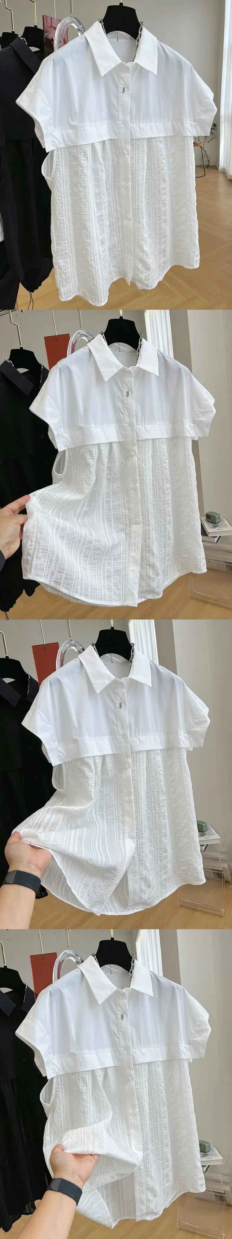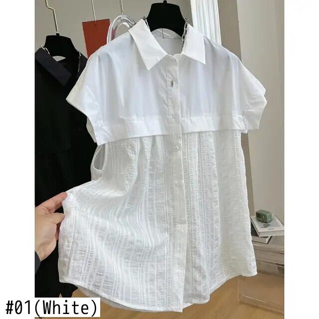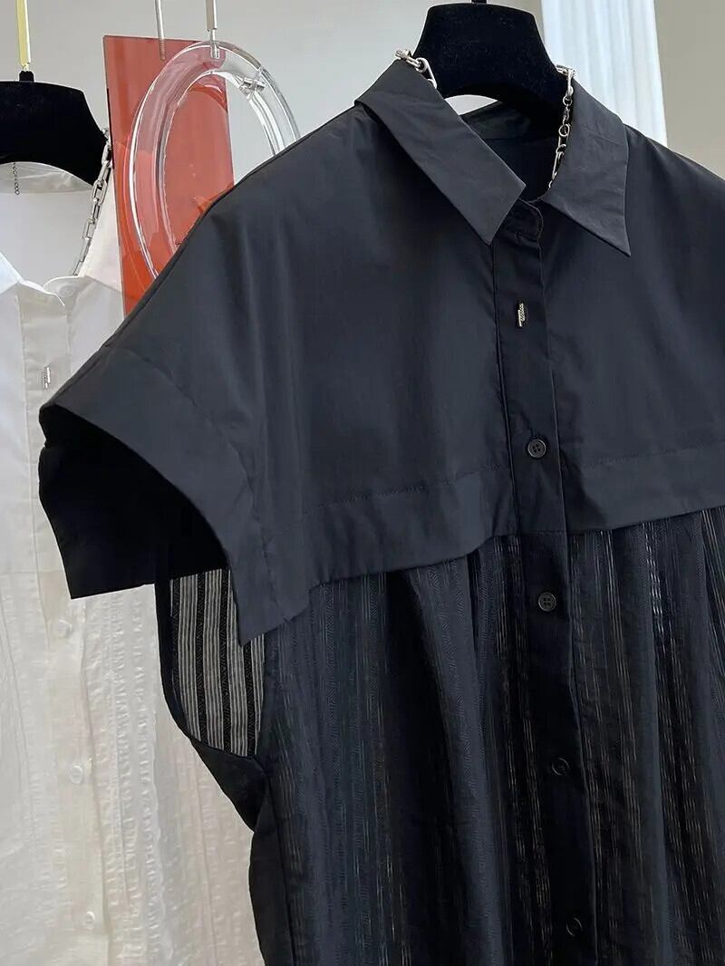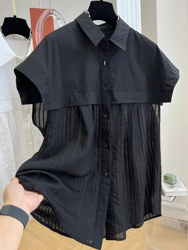 フライングショルダー半袖シャツ男性 Roupas ブラウスブラックホワイトルーズプリーツシャツデモーダ 2024 トップス ショート ハーフスリーブ