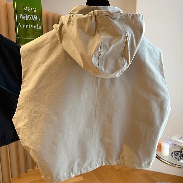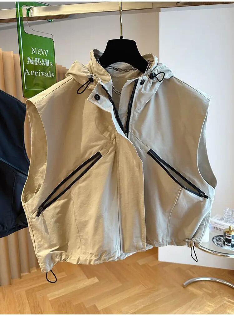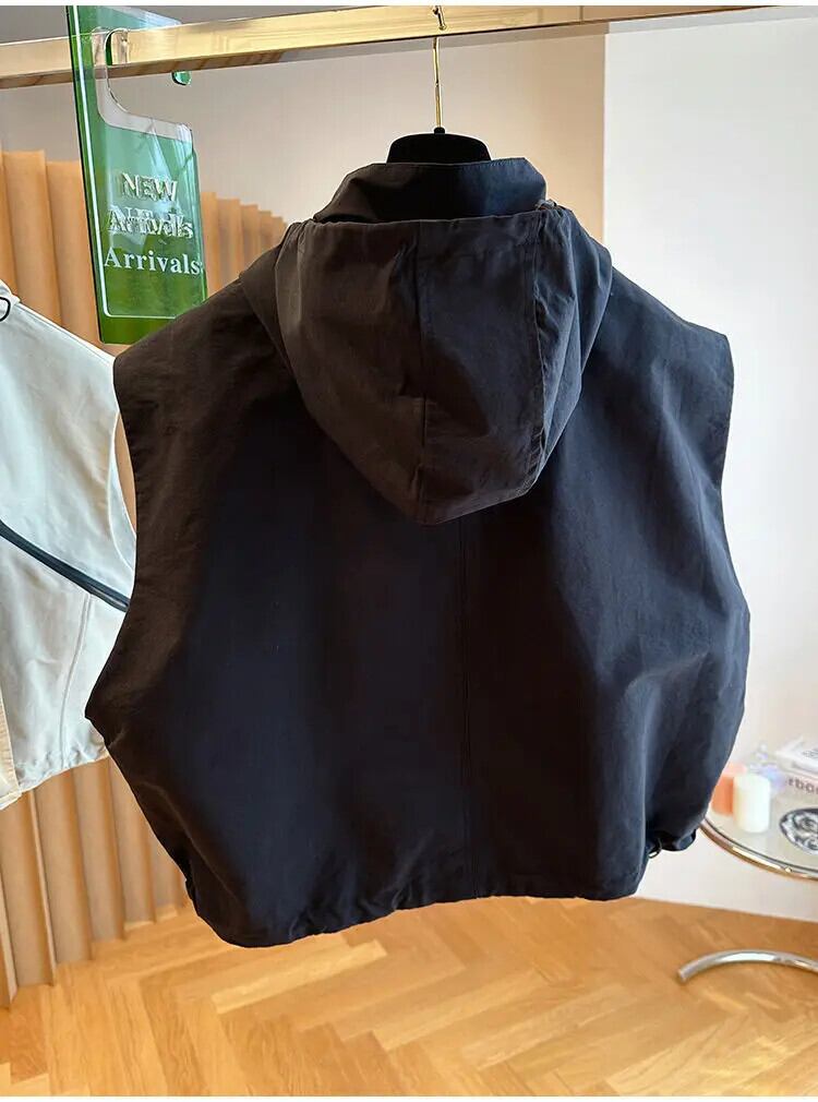 Chalecos パラコントラストフード付きベストノースリーブチョッキ 2024 怠惰スタイル Y2k クロップドジャケットトップスブラック