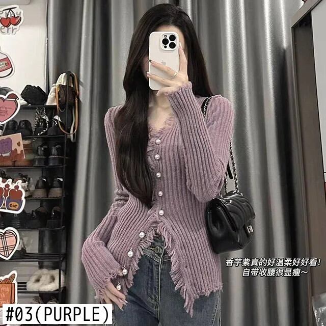 パープルセーターカーディガン秋電話ニットスリム長袖エレガンス Hotsweet Y2K トップソリッド V ネック ロング 大人ガーリー スウィート キュート カジュアル オータム 秋物 Vネック ソリッドカラー