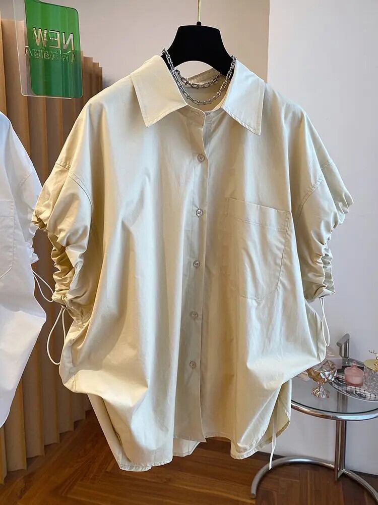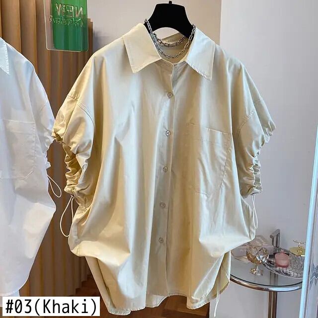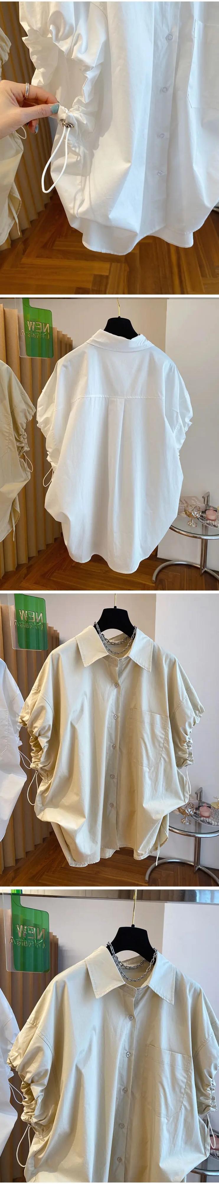 2024 ルーズ巾着花つぼみバブルスリーブ白シャツ半袖トップサマードールブラウス ショート ホワイト ハーフスリーブ 夏物 フラワーデザイン