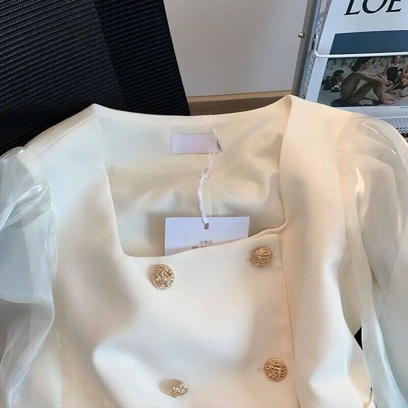 パッチワークスクエアカラーブレザー Chaquetas パラクロップドダブルブレストジャケットシックオフィススーツコートトップス スクウェア 会社 学校 通勤や通学にも