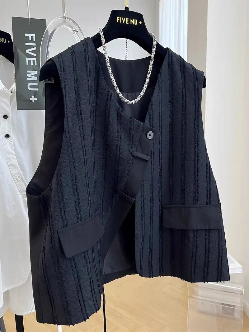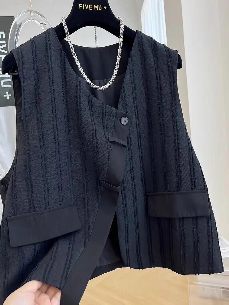 スーツベスト V ネックルーズチョッキ春シックノースリーブブレザージャケット スプリング 春物 Vネック ソリッドカラー