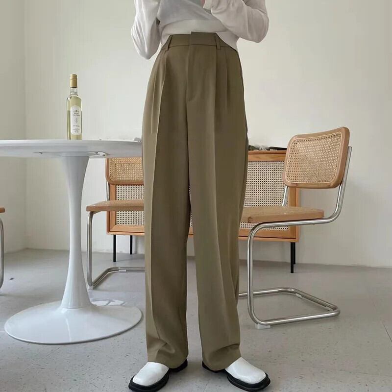 テーラードルーズストレートワイドレッグパンツスーツパンタロンソリッドウエストストリートブラックスタイルY2k 2024春 レッド スプリング 春物 ワイドパンツ ソリッドカラー