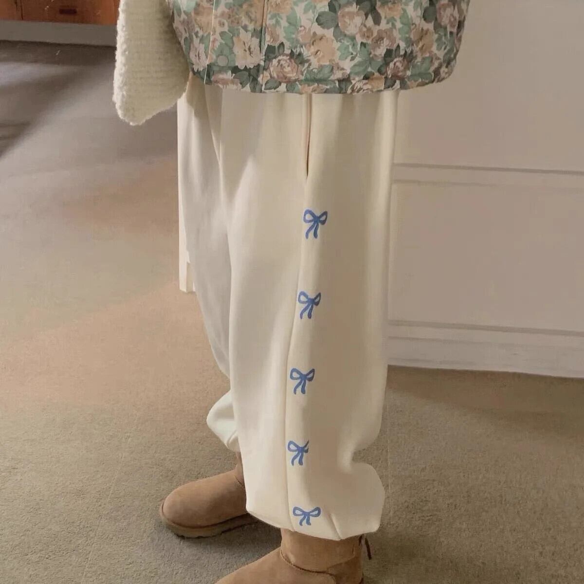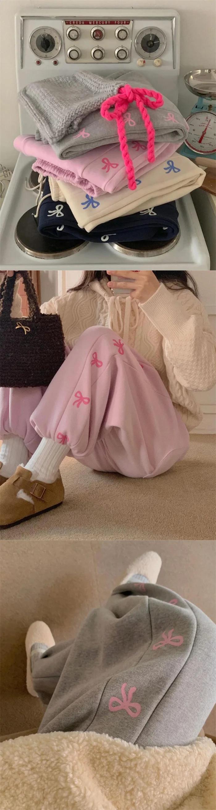 弓プリントベルベットスウェットパンツ弾性ウエストルーズポケット暖かいズボン冬秋ソフトジョガーパンツ エラスティック 伸縮 オータム 秋物 ウィンター 冬物