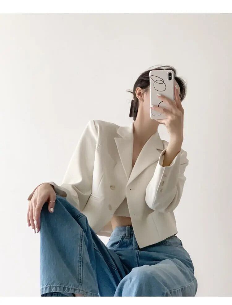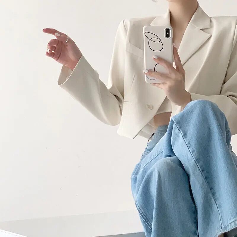 クロップドブレザーコートオールマッチノッチ襟オフィスレディブレザー長袖アウター 2024 シック ロング 会社 学校 通勤や通学にも