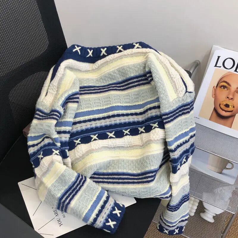 2024 秋カーディガンセーターブルー長袖コート V ネックニットジャンパーレディーススタイル ロング オータム 秋物 Vネック