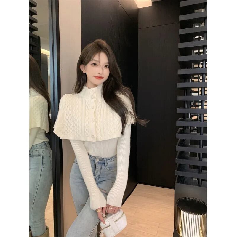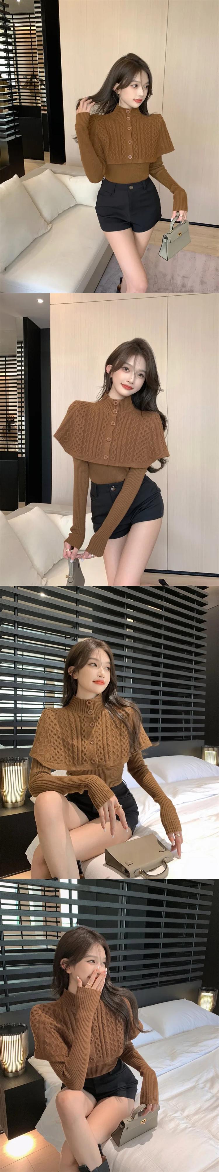 マントセーター 2 点セット V ネックプルオーバーセータートップス O ネックシングルブレストカーディガンニットショールスーツ Oネック Vネック