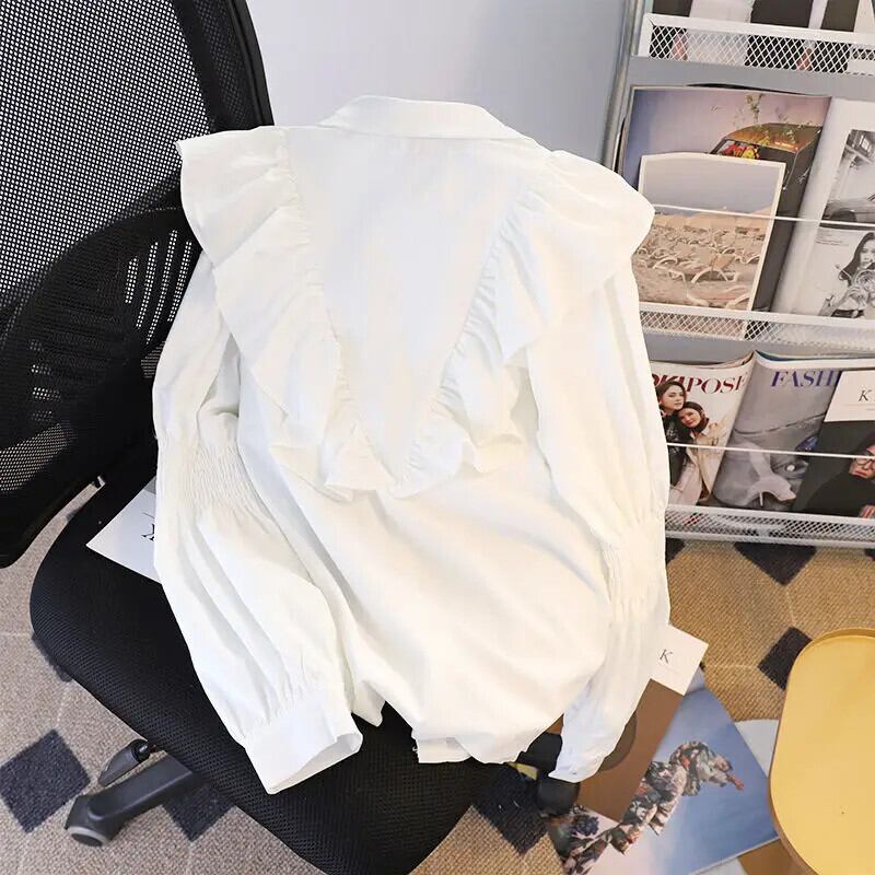 De Moda 2024 ホワイトフリル春ルーズブラウス黒人形トップス気質パーティークラブ愛シャツ ブラック スプリング 春物