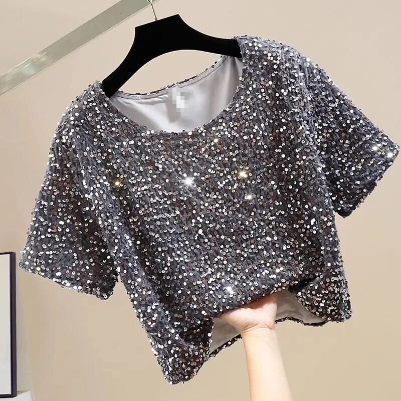 半袖ラウンドネックプルオーバーシャツヘビーカラースパンコール Tシャツグランジ原宿クロップトップ Y2k Tシャツ ショート レッド ハーフスリーブ かわいい Oネック