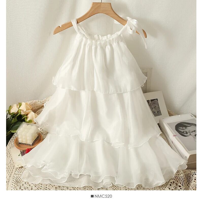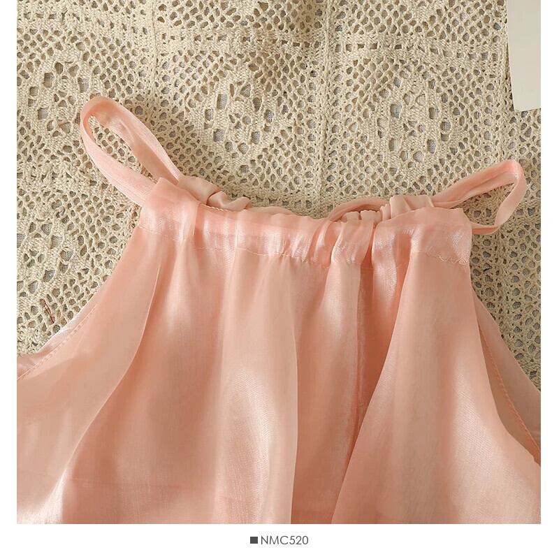フリルサスペンダーネックハンギングドレスショートピンクケーキビーチ夏esローブルースホワイトシフォン サマー 夏物
