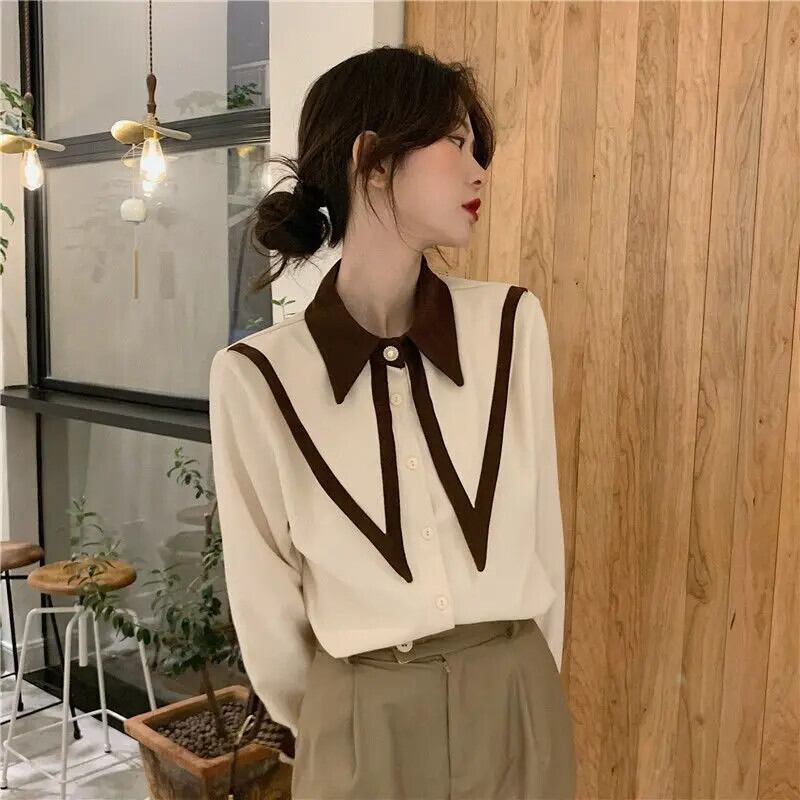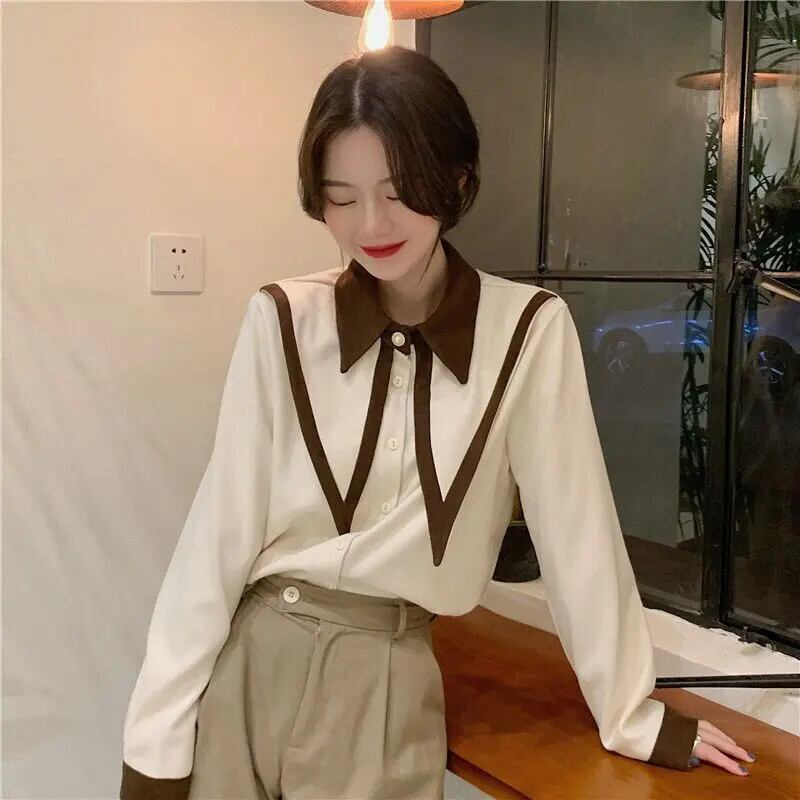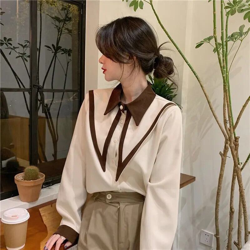 長袖ブラウス怠惰スタイルオフィスレディ Roupas s 2024 黒シャツ春トップス ロング ブラック スプリング 春物 会社 学校 通勤や通学にも
