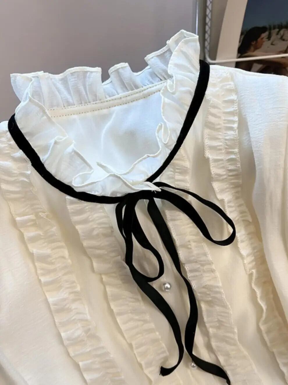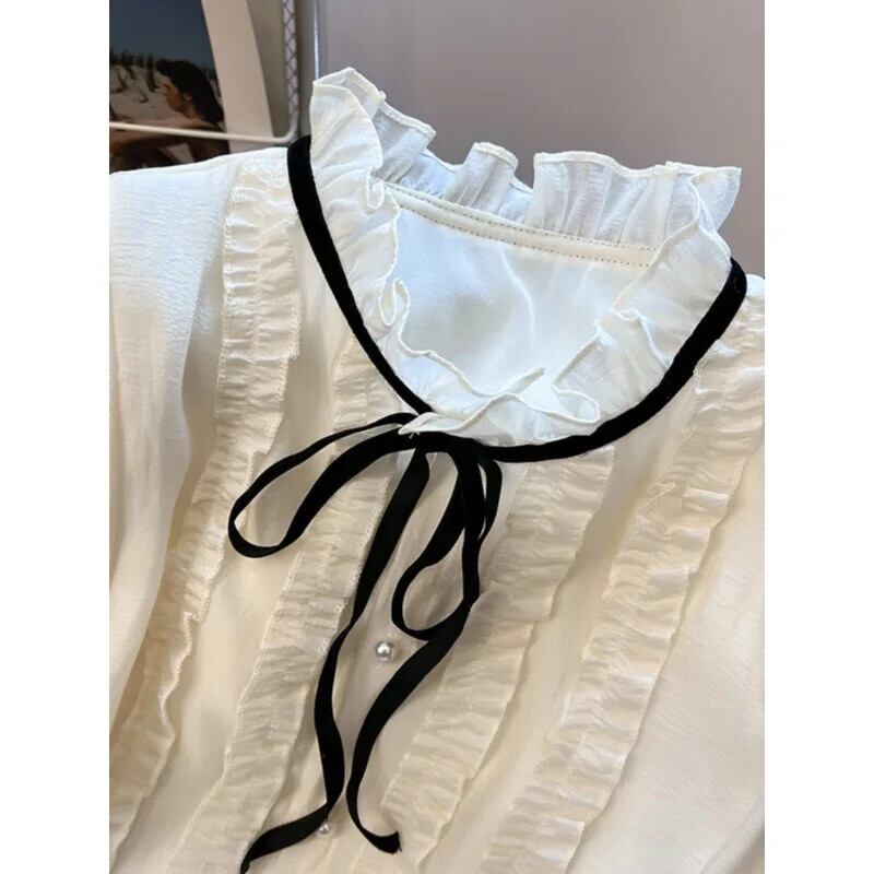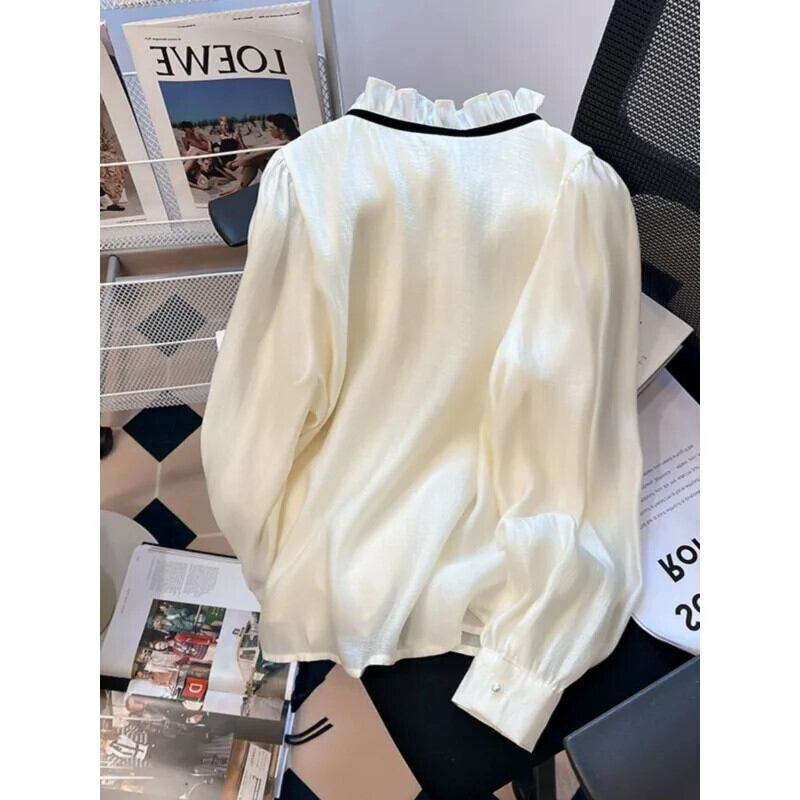 コントラスト ボウ ブラウス レディース 秋 優しい木耳 パレス レースアップ トップ es シャツ リボン オータム 秋物