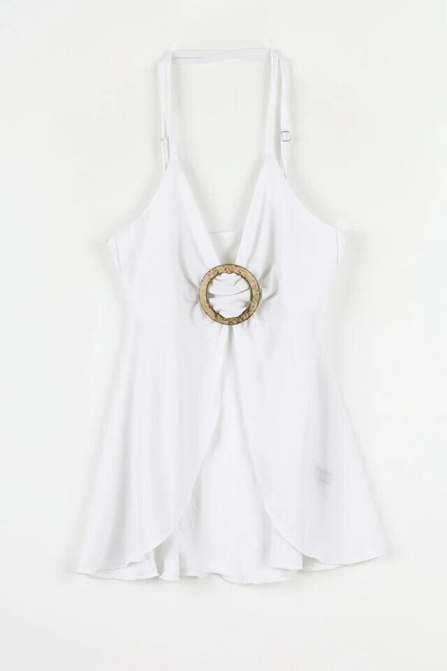 セクシータンク & キャミソール スリム ボタン プリーツ ドール グランジ クロップ トップ デ モーダ 2024 スリング ホワイト チュニック T シャツ フリル ラッフル Tシャツ