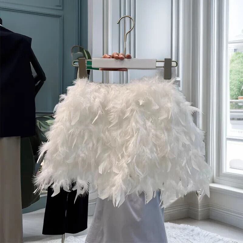 ブラックホワイトフェアリースウィートフェザースカート 2024 春夏 Y2k ストリート原宿ウエストスリムボトム段 Faldas moda 大人ガーリー キュート カジュアル かわいい スプリング 春物 サマー 夏物