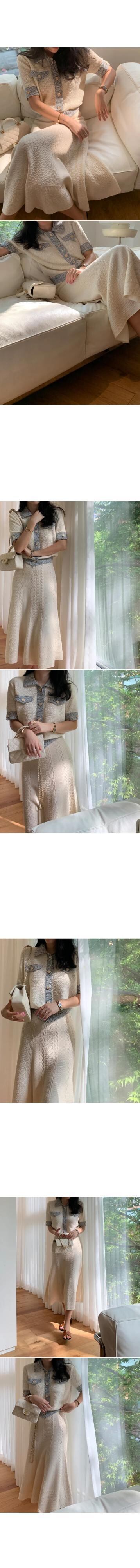 チャケータスタイル半袖コート夏コントラストラペルシングルブレストルーズニットクロップジャケット ショート ハーフスリーブ サマー 夏物