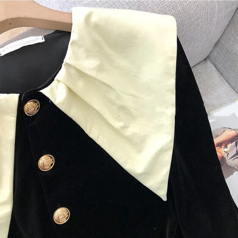 長袖ネイビーカラーシャツ Y2k ブラックベルベットシャツ 2024 スリムブラウスクロップトップス ロング