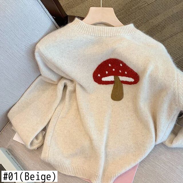 2024 Y2k プルオーバーセーターキノコ秋春ジャンパーソフトニットセーター スプリング 春物 オータム 秋物