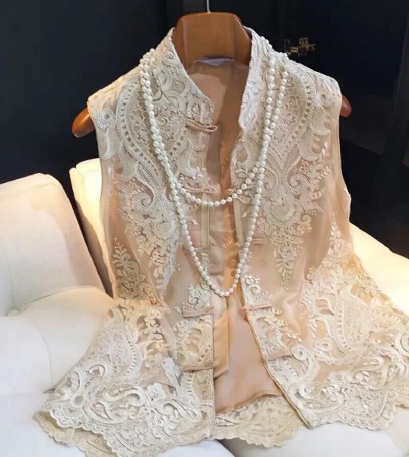 チャイナトップスノースリーブレーススタッズベスト日焼け止めシャツ薄いジャケットチャレコチョッキスタイル