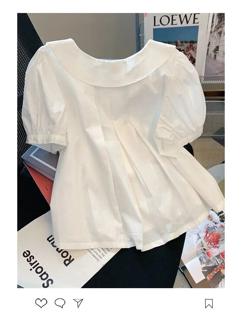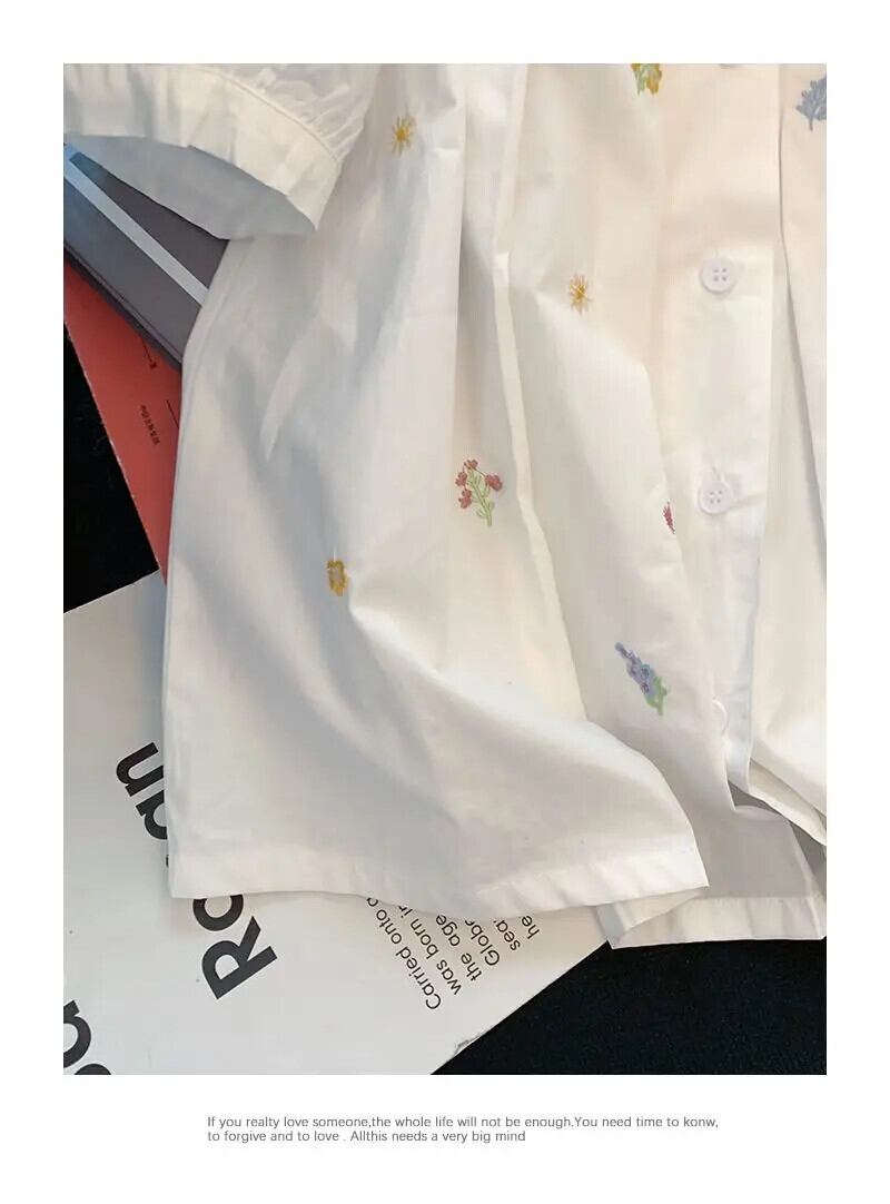 Sweet De Moda 2024 Verano es クロップトップス 刺繍ドールネック半袖シャツ ホワイト ブラウス シャツ ショート レッド ハーフスリーブ 大人ガーリー スウィート キュート カジュアル