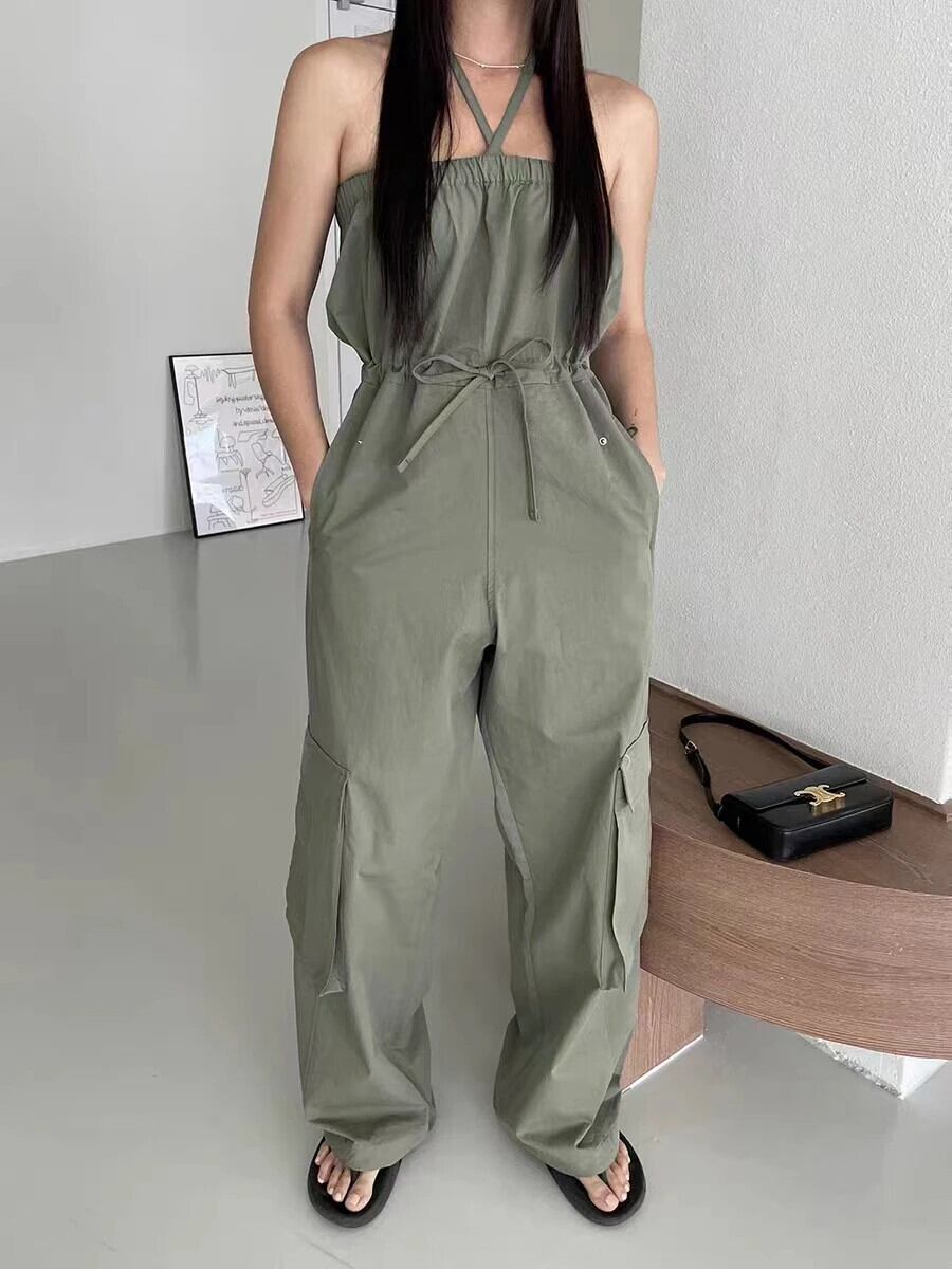 ホルターストラップレスジャンプスーツロンパースワンピース衣装オーバーオールワイドレッグルーズ黒パンツ Y2k ブラック ワイドパンツ