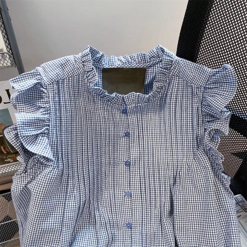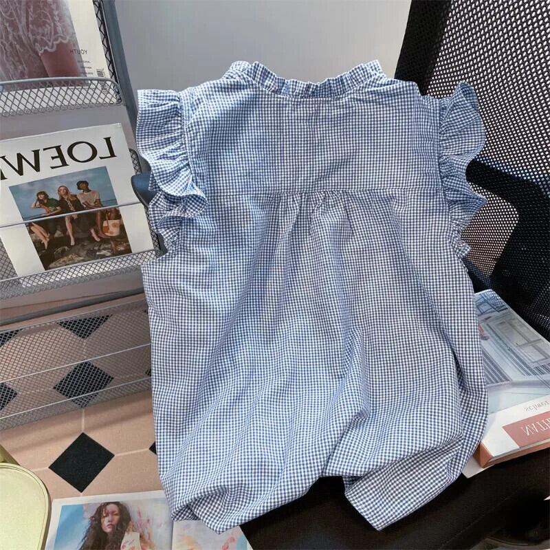 小さフライングスリーブトップ甘いフリルチェック柄ノースリーブシャツブラウス人形 s es 作物 Y2k シャツ 大人ガーリー スウィート キュート カジュアル