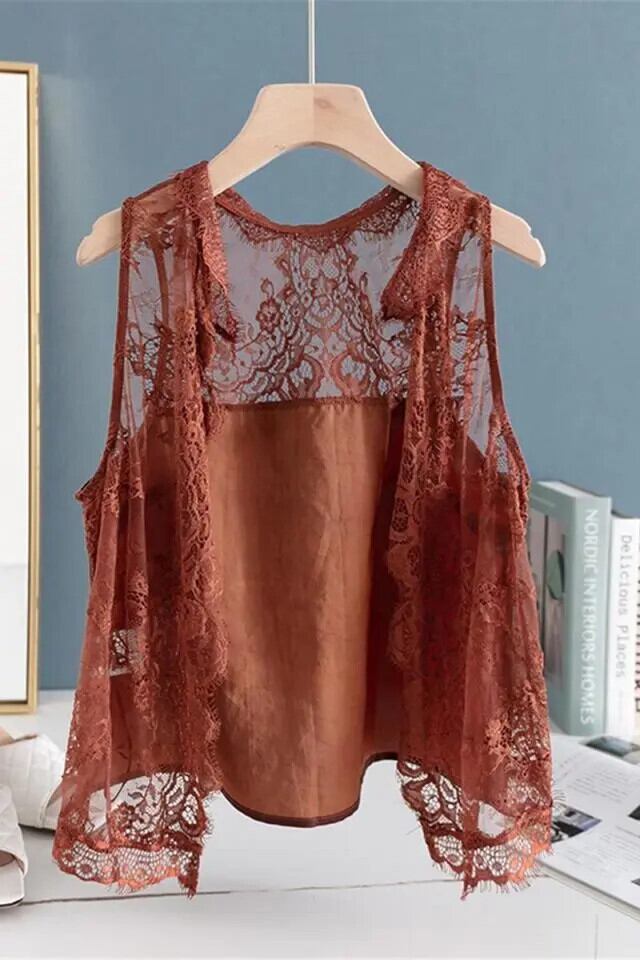 レースカーディガンノースリーブベスト黒チョッキ Colete Feminino 日焼け止めシャツ Chalecos パラ作物ジャケット Y2k トップ ブラック