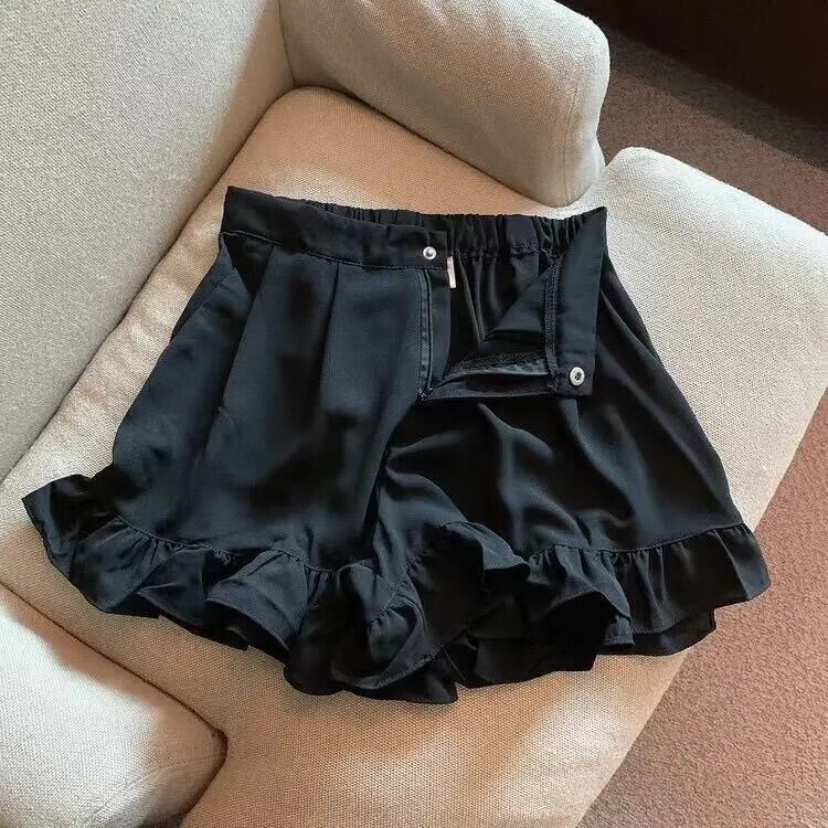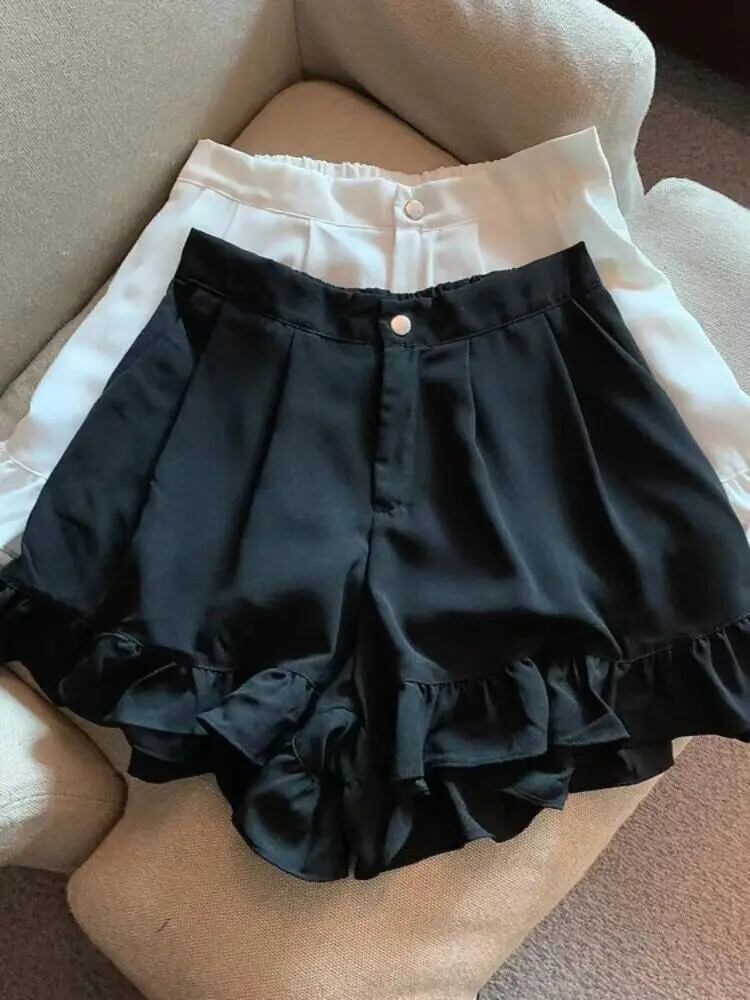 ブラックホワイトウエストワイドレッグフリルショーツパンタロンコルトスデセクシー夏ショートスカートY2k Femininoパンツ サマー 夏物 ブルマー ワイドパンツ