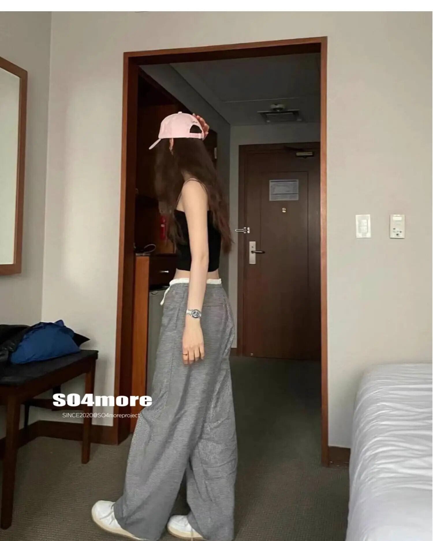 レトロ怠惰ストレート脚パンツストリートカーゴスウェットパンツ Pantalones デ Y2k チェック柄だぶだぶパンツ 2024