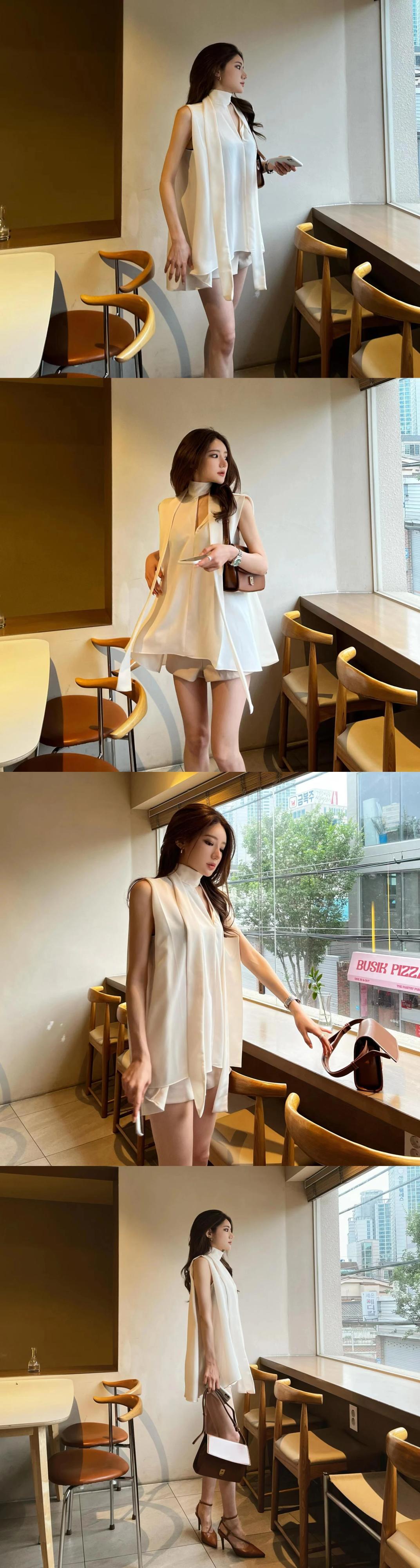 ブラウスネクタイネック V ネックリボンノースリーブシャツ夏トップ甘い黒シフォンシャツ ブラック 大人ガーリー スウィート キュート カジュアル サマー 夏物 Vネック