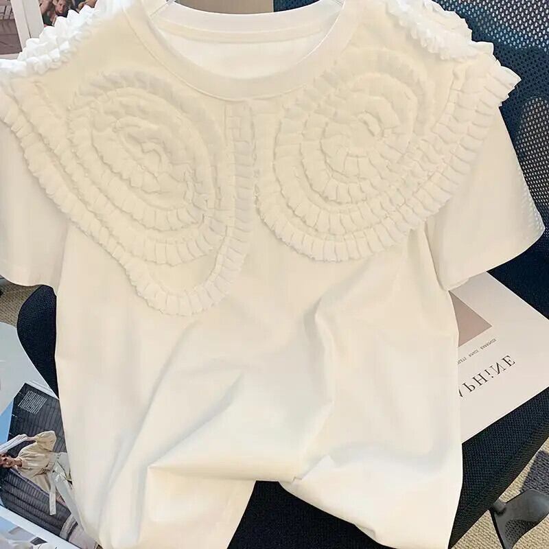 ヘビーホワイトドールネック半袖 Tシャツグランジクロップトップグラフィック Tシャツロパデ夏美的 Tシャツ ショート ハーフスリーブ サマー 夏物