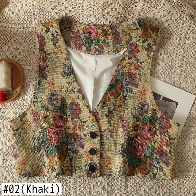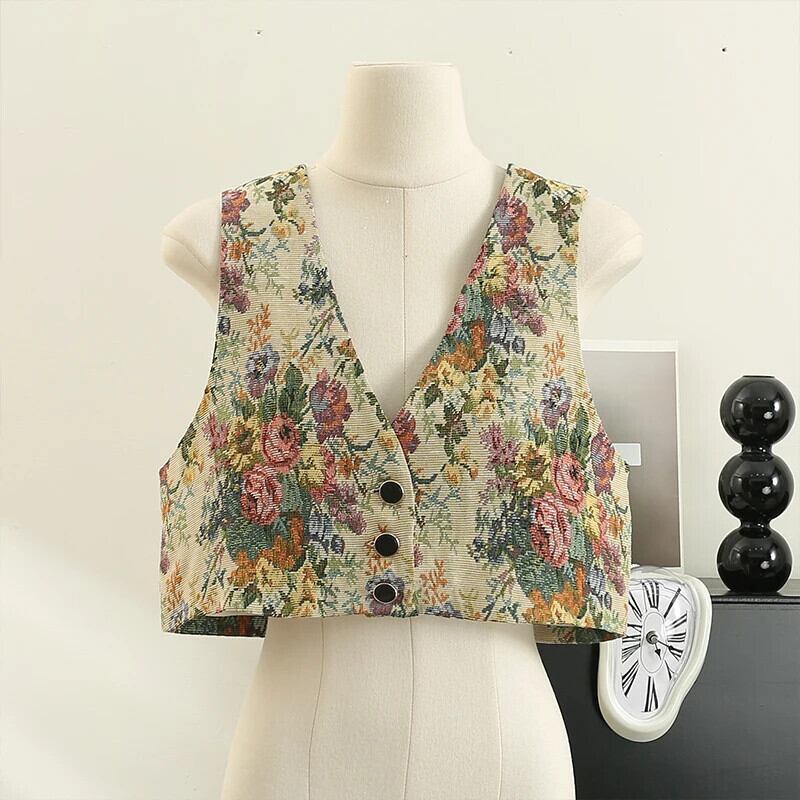 ショートノースリーブレトロプリント油絵ベストチョッキ Chaleco セクシー Y2k タンクトップキャミソール V ネックサマージャケット 半袖 ハーフスリーブ 夏物 Vネック