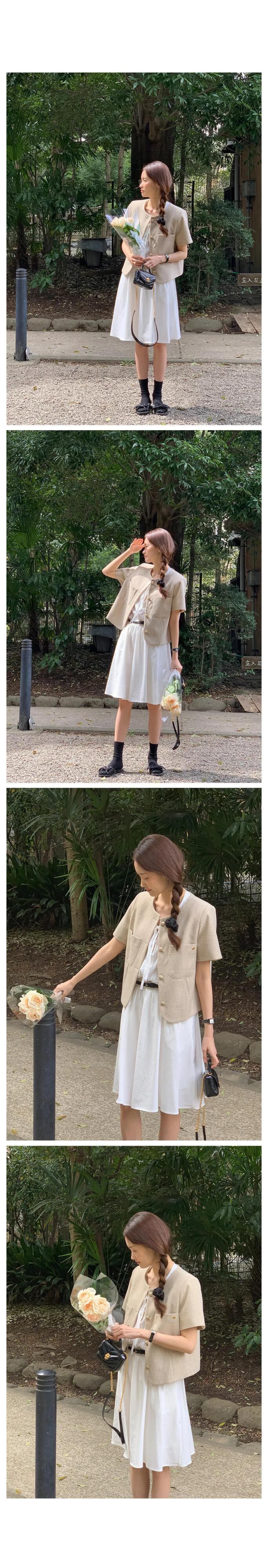 スーツシックシンプルジャケット O ネックシングルブレストダブルポケットルーズ半袖コートトップス ショート ハーフスリーブ Oネック