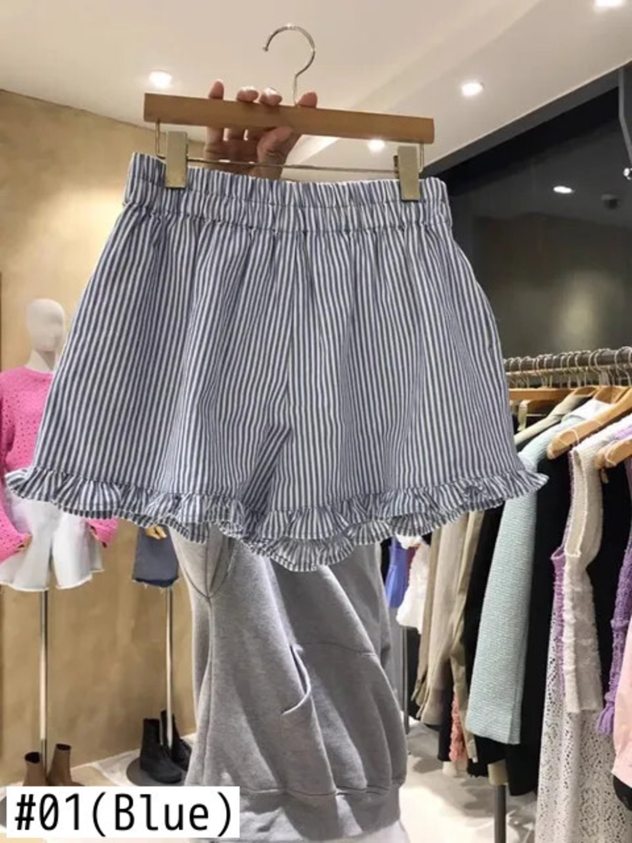 弾性ウエストコントラストブルーストライプショーツ Pantalones Cortos De ショートパンツ Y2k 夏 エラスティック 伸縮 サマー 夏物 ブルマー
